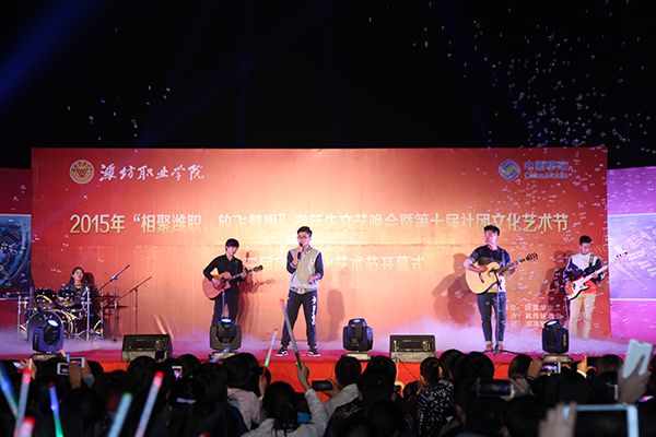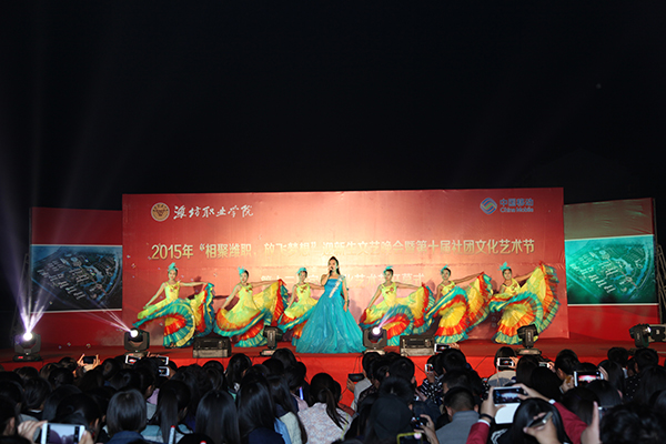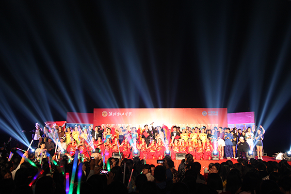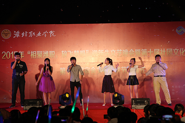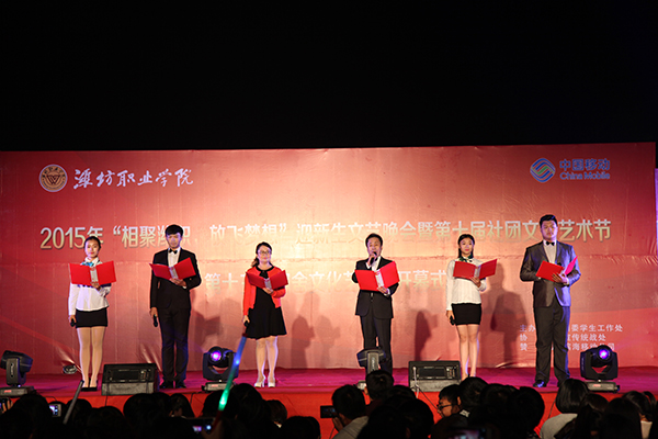 10月15日晚,学院2015年“相聚潍职,放飞梦想”迎新生文艺晚会暨第十届社团文化艺术节、第十三届宿舍文化艺术节开幕式在学院滨海校区体育场举行。学院院长王家爱,党委副书记宋桂言,副院长赵君堂、贺志强、毕建华,纪委书记李瑞昌出席并观看晚会。