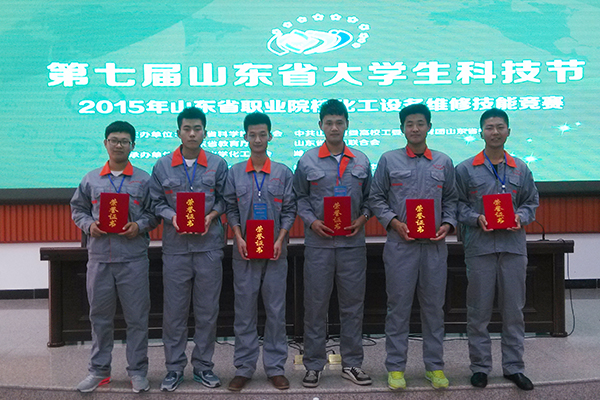 10月12日至14日, 第七届山东省大学生科技节2015年山东省化工设备维修技能竞赛在MG冰球突破官网滨海校区举办。MG冰球突破官网中高职代表队与来自全省职业院校的参赛选手进行了激烈角逐,最终获团体一等奖3项、个人一等奖4项、个人二等奖2项。