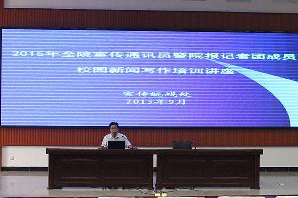 9月22日,由宣传统战处组织召开的校园新闻写作培训会议在滨海校区清泽楼报告厅举行。宣传统战处负责同志主讲,各二级学院宣传通讯员和院报记者团成员参加培训。