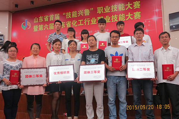 9月18日至20日,MG冰球突破官网选派6名学生组成的两支学生代表队和6名年轻教师组成的两支职工代表队,参加了由省人力资源社会保障厅、省财政厅、省总工会、团省委、省石化协会主办,山东化工技师学院承办的首届山东省“技能兴鲁”职业技能大赛暨2015年山东省第六届化工行业职业技能竞赛。MG冰球突破官网4支参赛队在竞赛中喜获团体二等奖3项、团体三等奖1项、个人二等奖4项、个人三等奖7项的好成绩,2名教师被评为优秀指导教师,2名教师被聘为化工行业职业技能大赛化工总控工竞赛裁判员,参赛团队获优秀组织奖。