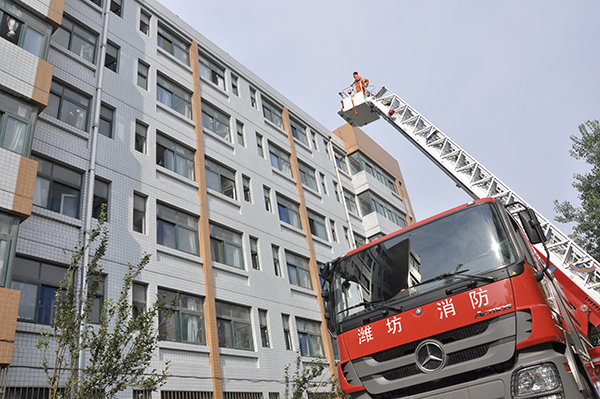 奎文校区举行2015级新生防震抗灾及消防紧急疏散演习