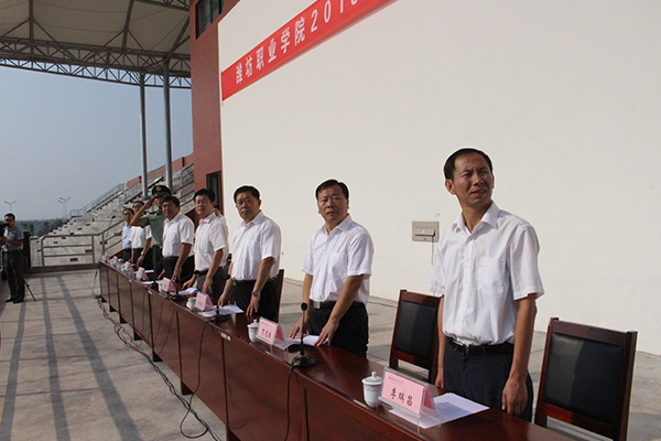奎文校区新生开学典礼暨军训动员大会9日上午在奎文校区体育场举行。学院领导班子成员出席大会,宋桂言对同学们提出了要求,希望大家秉承“明德尚学、强能善技”的校训精神,要志存高远,发奋成才;规范行为,自理自律;珍爱生命,确保安全;做好规划,实现发展,在潍职院这片沃土中茁壮成长。驻潍某部连长于凯出席。军训教官代表朱爱国、教师代表侯秉文和新生代表张傲男相继作了发言。