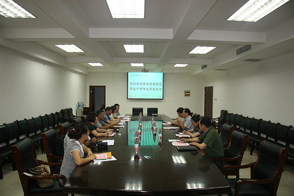 8月13日,青岛市城阳区职业中等专业学校刘同珂校长一行7人来MG冰球突破官网考察交流。副院长贺志强在会议室会见了客人,教务处、招生就业处、汽车工程学院负责同志参加座谈。