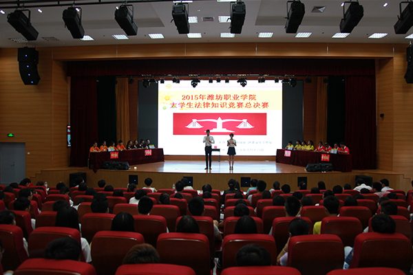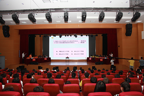 6月18日下午,学院2015年大学生法律知识竞赛总决赛在滨海校区图书馆报告厅举行。团委学生工作处负责同志、宣传统战处有关负责同志、各二级学院团总支书记与师生代表、青年法学社同学代表450余人观看了竞赛。思想政治教学部法学教师代表担任了竞赛评委,并对选手作答进行了精彩点评。