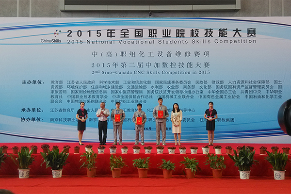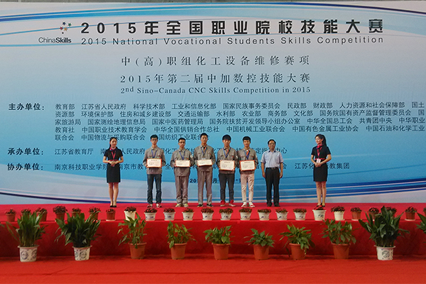 6月9日至12日,由教育部、江苏省人民政府等主办,江苏省教育厅、中国化工教育协会等承办的2015年全国职业院校技能大赛化工设备维修赛项在南京科技职业学院举行。来自全国各省、直辖市、自治区的58所中高职院校的116名选手分别在化工设备维修专业基础、镶配件制作、化工设备检验、机泵拆装运行项目上展开激烈角逐。MG冰球突破官网高职组选手朱林森、房锐同学获得团体二等奖,中职组王超、王华华同学获得团体三等奖。朱林森以全国第三名的成绩破格晋升技师资格,成为山东省首个学生身份的化工检修钳工技师。