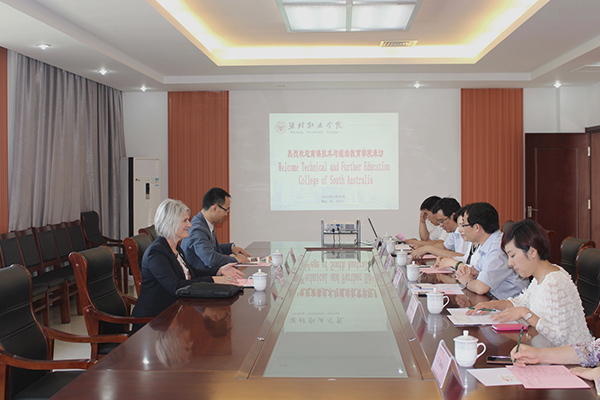 座谈会上,赵君堂代表学院欢迎来访客人,介绍了学院概况、办学特点及国际交流与合作等方面的情况。澳方代表介绍了南澳技术与教育学院的基本情况及办学特点。澳大利亚是世界上职业教育发达国家之一,建立了与产业、行业紧密结合的较为先进的现代职业教育体系。TAFESA学院是南澳政府独立的法定教育机构,学校设有44个校区、学习中心,每年招收学生达8万余人,也是澳大利亚最大的职业教育与培训机构,根据社会需求和行业、产业要求可提供1300多个不同类别、不同层次的证书,将技术与学术进行了良好结合,承担着为社会培养高素质技术与管理人才的职能。