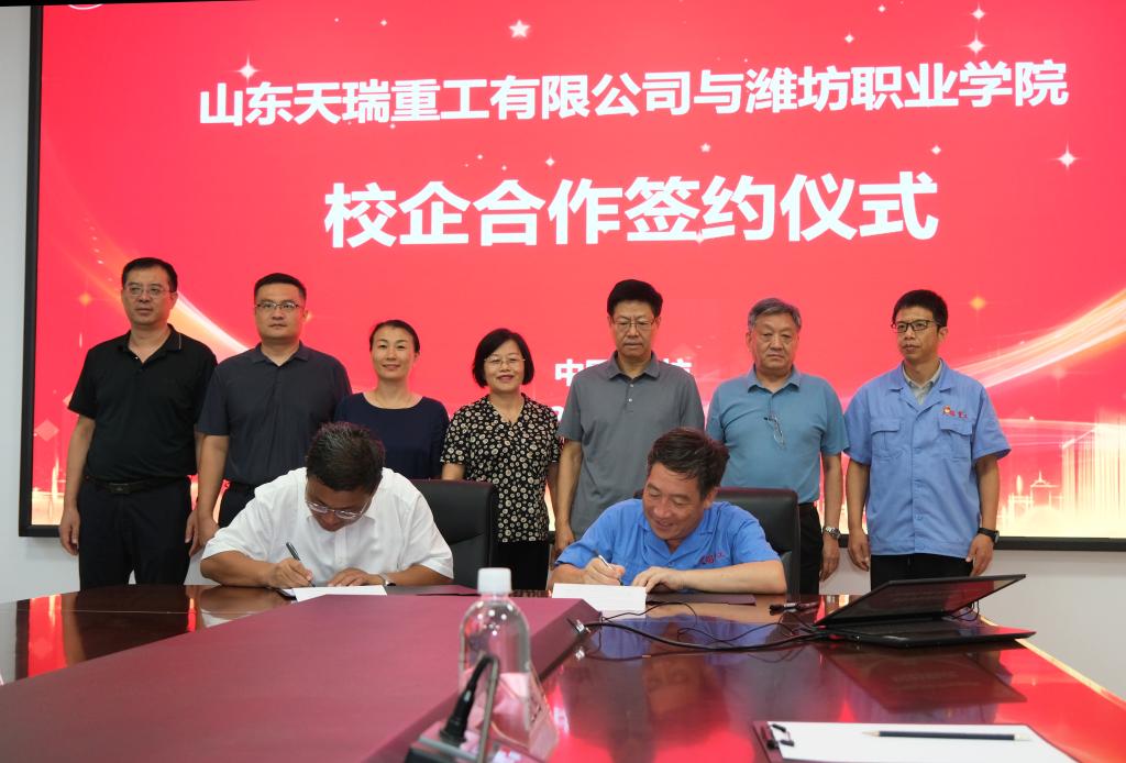 9月10日下午,MG冰球突破官网与山东天瑞重工有限公司校企合作签约仪式在磁悬浮产业园举行。学院党委副书记韩瑞东,党委委员、办公室(统战部)主任(部长)刘志艳,党委委员、组织人事处(离退休工作处)处长于涛及科技处等部门负责同志,潍坊市磁产业发展及应用推进工作专班顾问丁汉邦、高立伯,全国人大代表、山东天瑞重工有限公司首席科学家李永胜及相关部门负责人参加仪式。