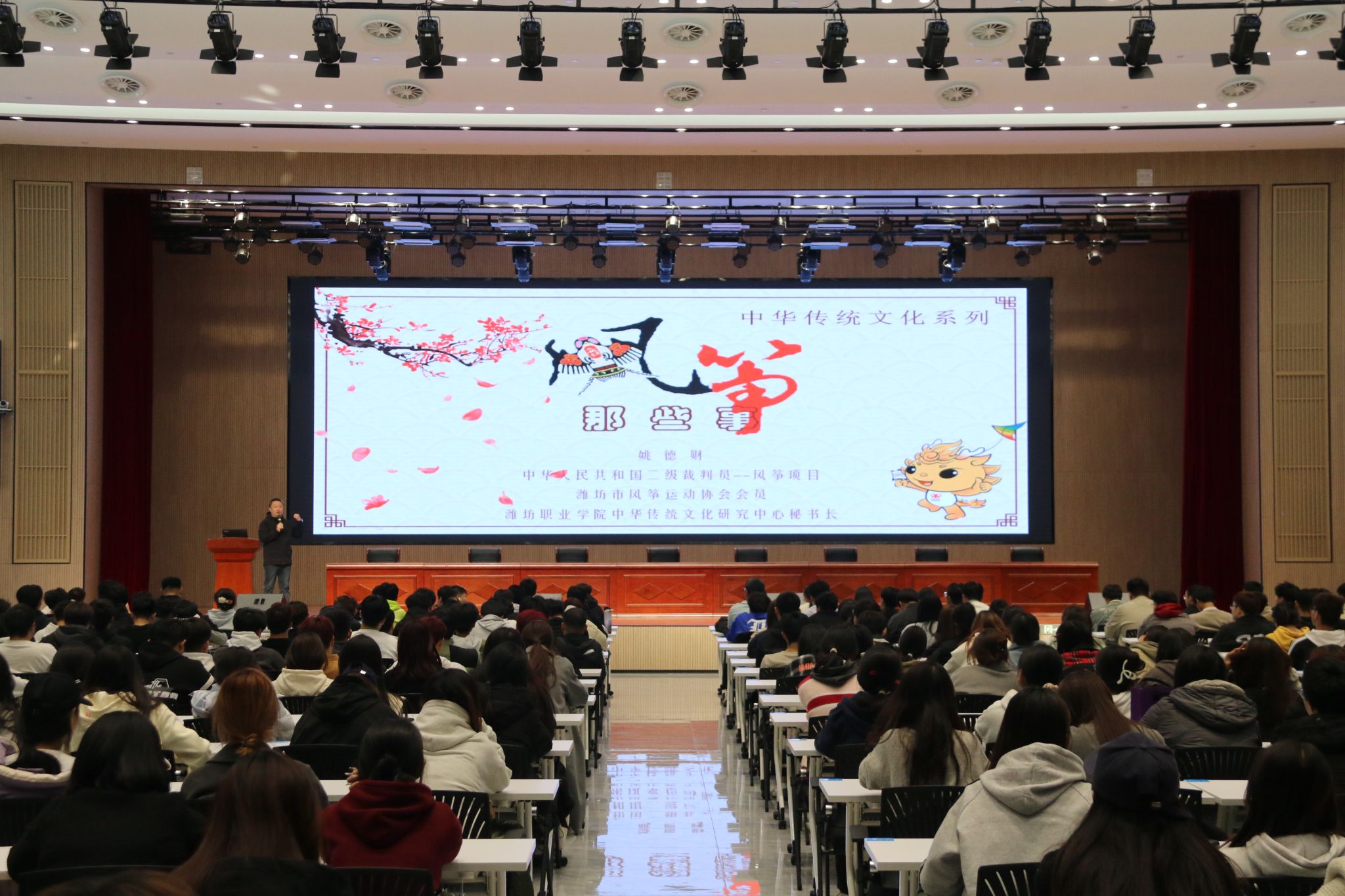 11月7日下午,学院第118场人文与思政讲座在滨海校区南区综合楼报告厅举行。通识教育中心姚德财老师作了题为“中华传统文化系列-风筝那些事”的讲座,2024级400余名学生聆听了讲座。