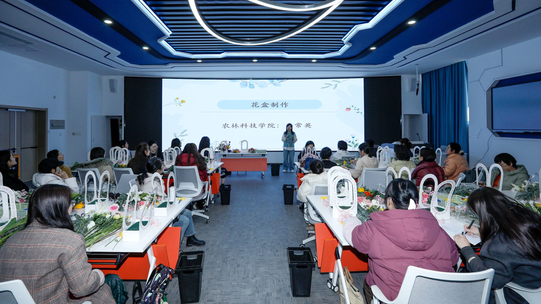 为热烈庆祝第115个“三八”国际劳动妇女节,进一步丰富广大女教职工的业余文化生活。3月6日下午,学院在滨海校区金泽楼举办“三八”国际劳动妇女节插花艺术培训及交流活动。来自学院各部门40余名女教职工代表参加活动。