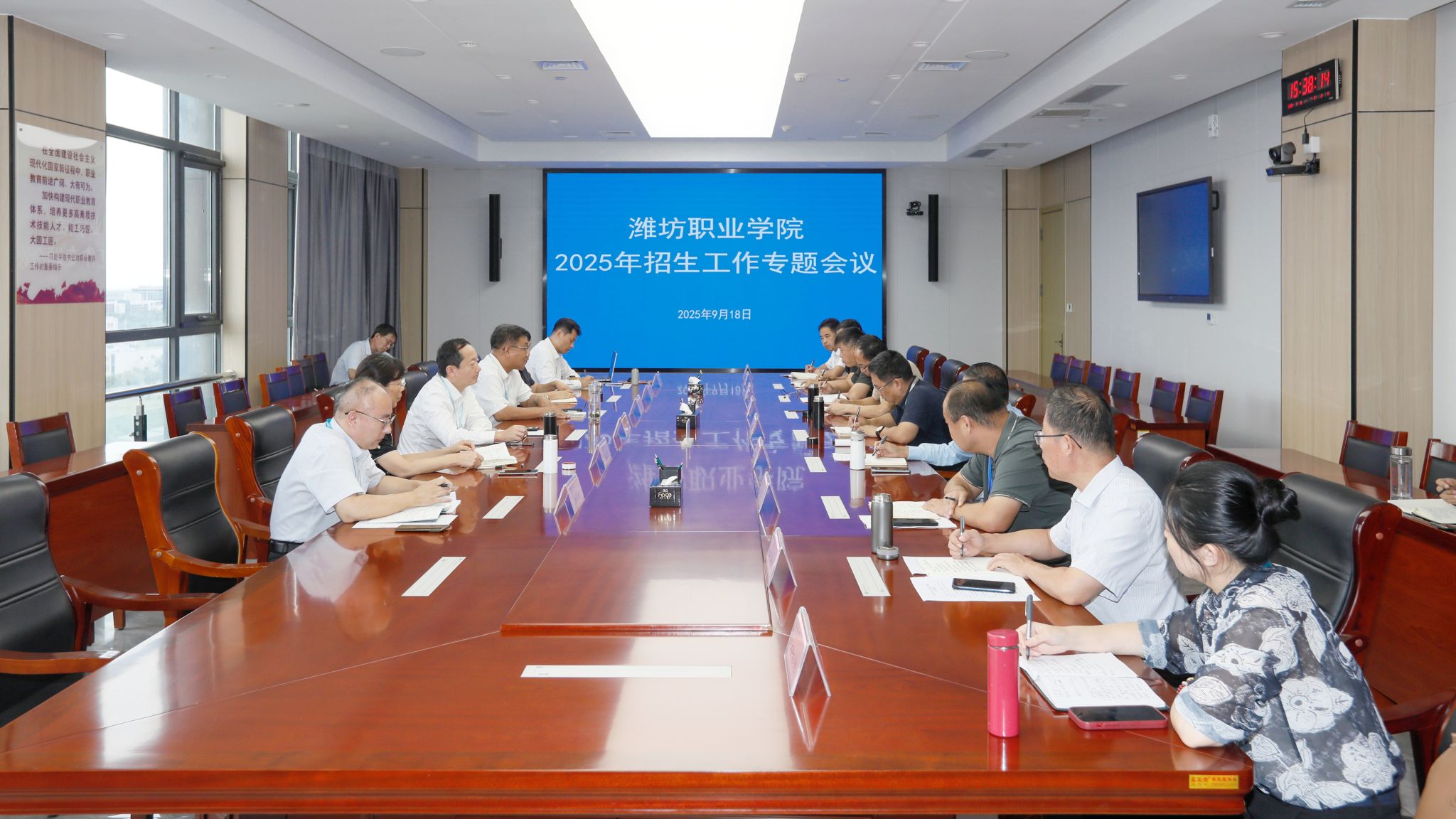 9月18日下午,学院在滨海校区召开2025年招生工作专题会议,党委书记王浩,院长韩瑞东,副院长陈美霞,党委委员、宣传部部长鞠桂芹出席会议,各二级学院、教务处、招生就业处等部门负责同志参加会议。韩瑞东主持会议。