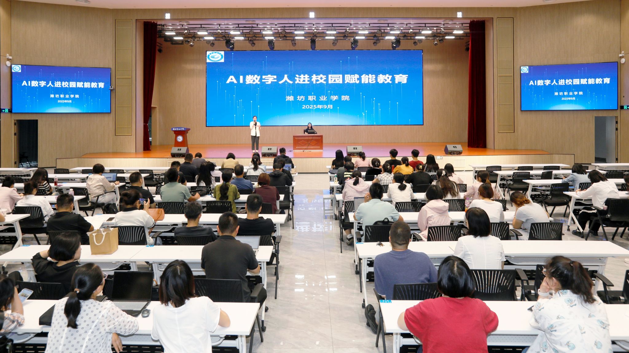 9月18日,为助力学院一线教师紧跟时代步伐,提升数字素养与创新能力,探索人工智能赋能教育教学、科研新途径,MG冰球突破官网携手潍坊市中华职业教育社、华为集团,组织开展“AI数字人进校园赋能教育”培训活动。各教学部门骨干教师110余人参加培训。