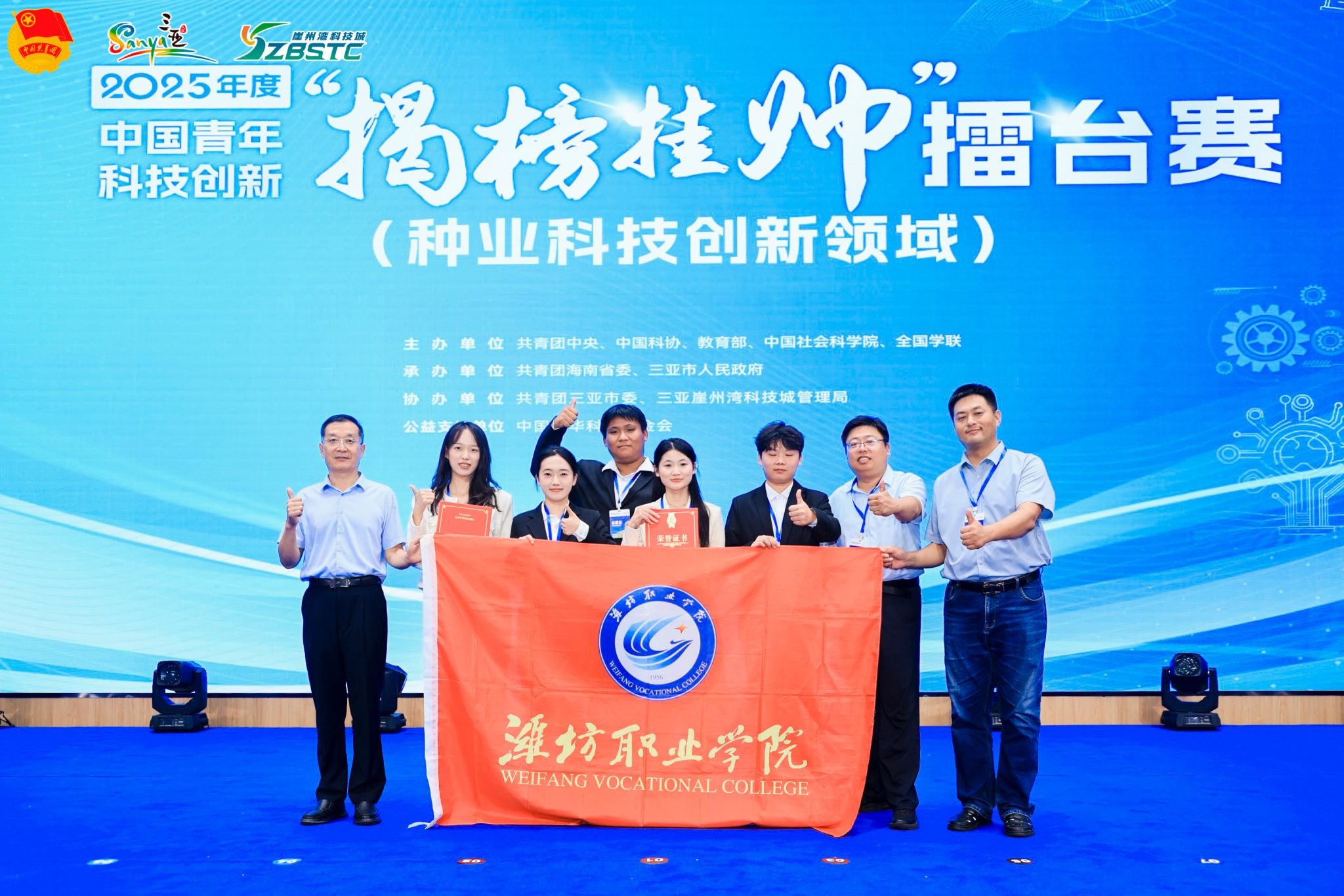 佳绩的背后,是师生团队近两年的深耕与坚守。备赛期间,师生团队深入实验室、试验田,反复优化方案、验证数据,每一个环节都凝聚着团队的智慧与汗水。学院团委召开推进会议,调度部署大赛工作,先后多次邀请学院领导、竞赛专家等对参赛项目进行指导,对参赛项目材料百余次修改、优化提升。比赛期间,学生团队沉着应战、敢打敢拼,以其显著的创新性和应用潜力赢得评委高度认可,充分展现了“崇实尚行 敢于争先”的潍职精神。