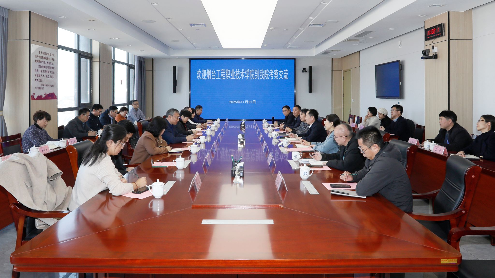 11月21日上午,烟台工程职业技术学院党委书记马淑臣一行到MG冰球突破官网考察交流。学院党委书记王浩接待客人,副院长陈美霞陪同。办公室、宣传部、教务处、机电工程学院等相关部门负责人参加座谈交流。
