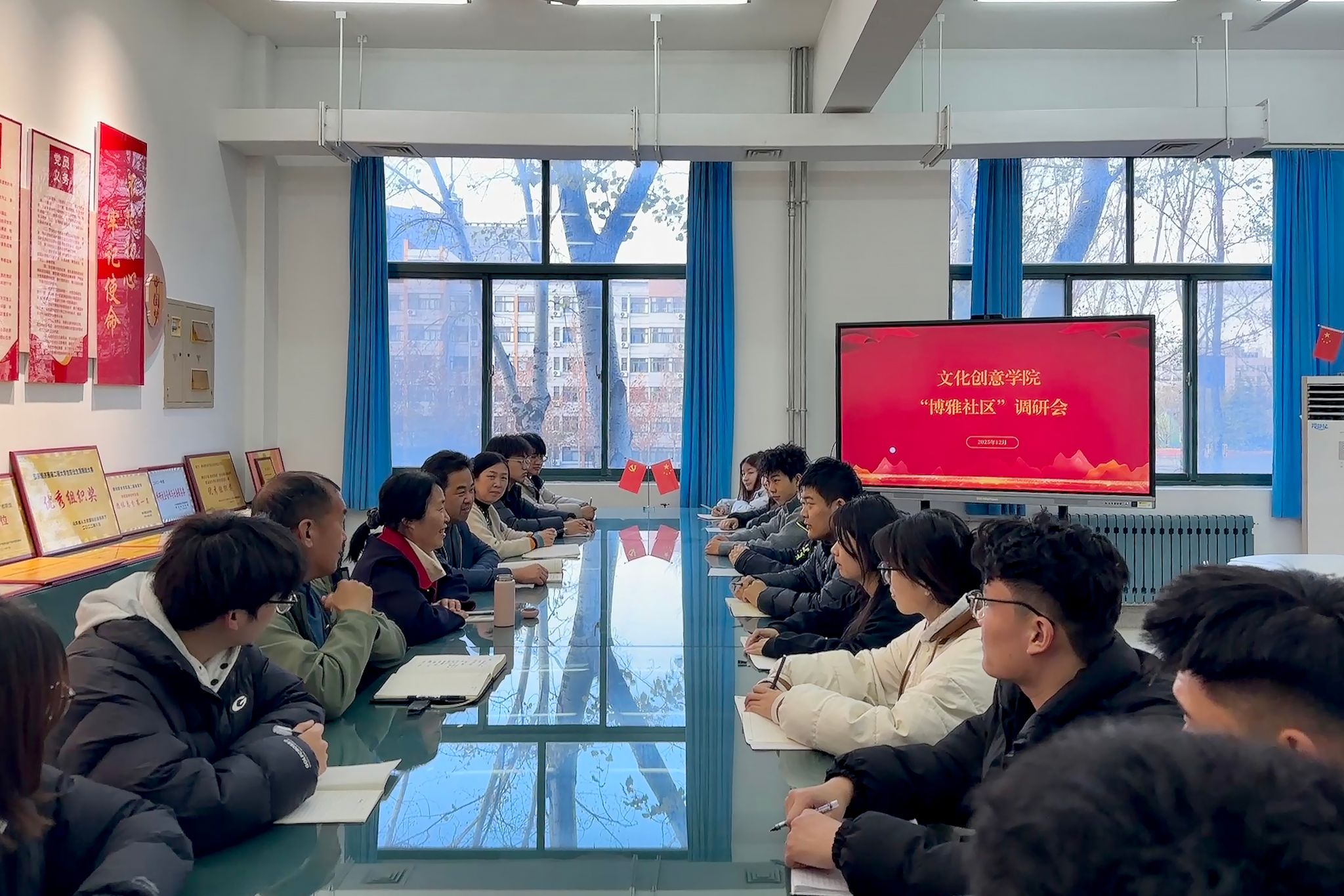 为深入推进“一站式”学生社区综合管理模式建设,加强学院与学生间的沟通联系,精准把握学生成长需求,切实解决学生在学习生活中的实际问题,12月1日,学院在文化创意学院博雅社区开展调研座谈活动,党委委员、宣传部部长鞠桂芹,文化创意学院党总支负责同志、学生管理负责同志、辅导员办公室主任及来自不同年级、不同专业的16名学生代表参加。