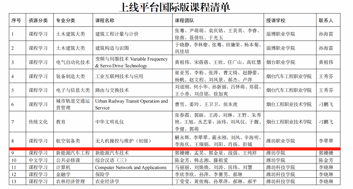 近日,教育部组织开展的国家智慧教育平台国际版课程资源遴选结果公布,山东省共有83门课程入选国家智慧教育平台国际版,MG冰球突破官网主持建设的《无人机操控与维护(初级)》课程成功入选。
