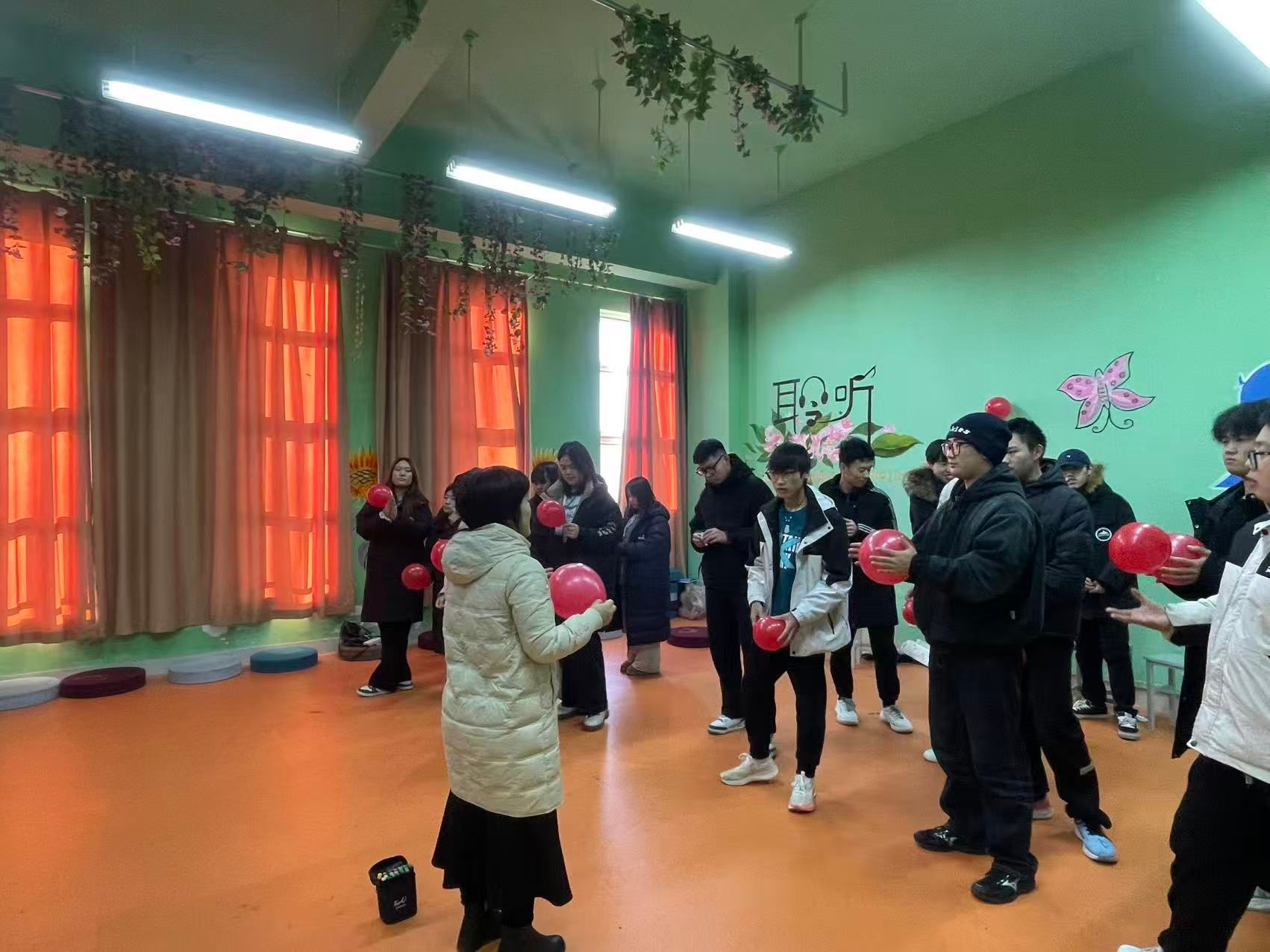 本次活动以一段简单的心理解压操开场,随后通过“压力表情包接力”和“压力气球”两个核心环节为同学们解压赋能。“压力表情包接力”中,同学们抽取情绪词卡片,以夸张的肢体与表情演绎传递,在欢笑中打破陌生感,学会轻松面对压力。“压力气球” 环节,大家将学习压力写于气球之上,先共同放飞喻示烦恼消散,再一起踩破气球,宣告“打破压力,释放自我”。