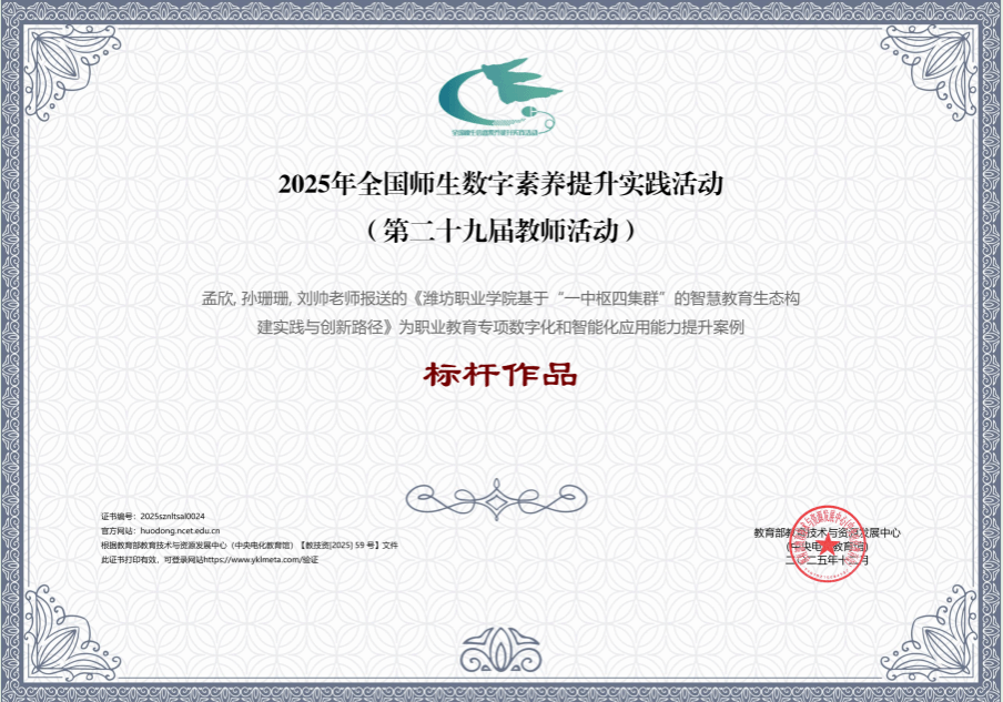 学院获评教育部教育技术与资源发展中心2025年职教专项数字化和智能化应用能力提升案例标杆作品
