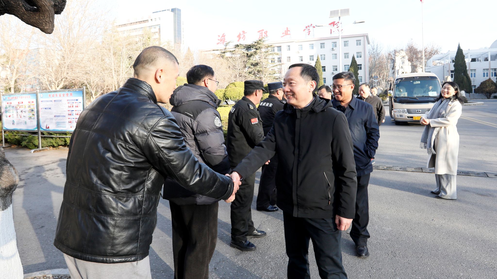 学院领导一行先后来到奎文校区和滨海校区,与在岗值班人员亲切握手、热情交谈;也看望了假期留校的国际学生,并代表学院党委和行政向他们送上了慰问品和暖暖的新春祝福。