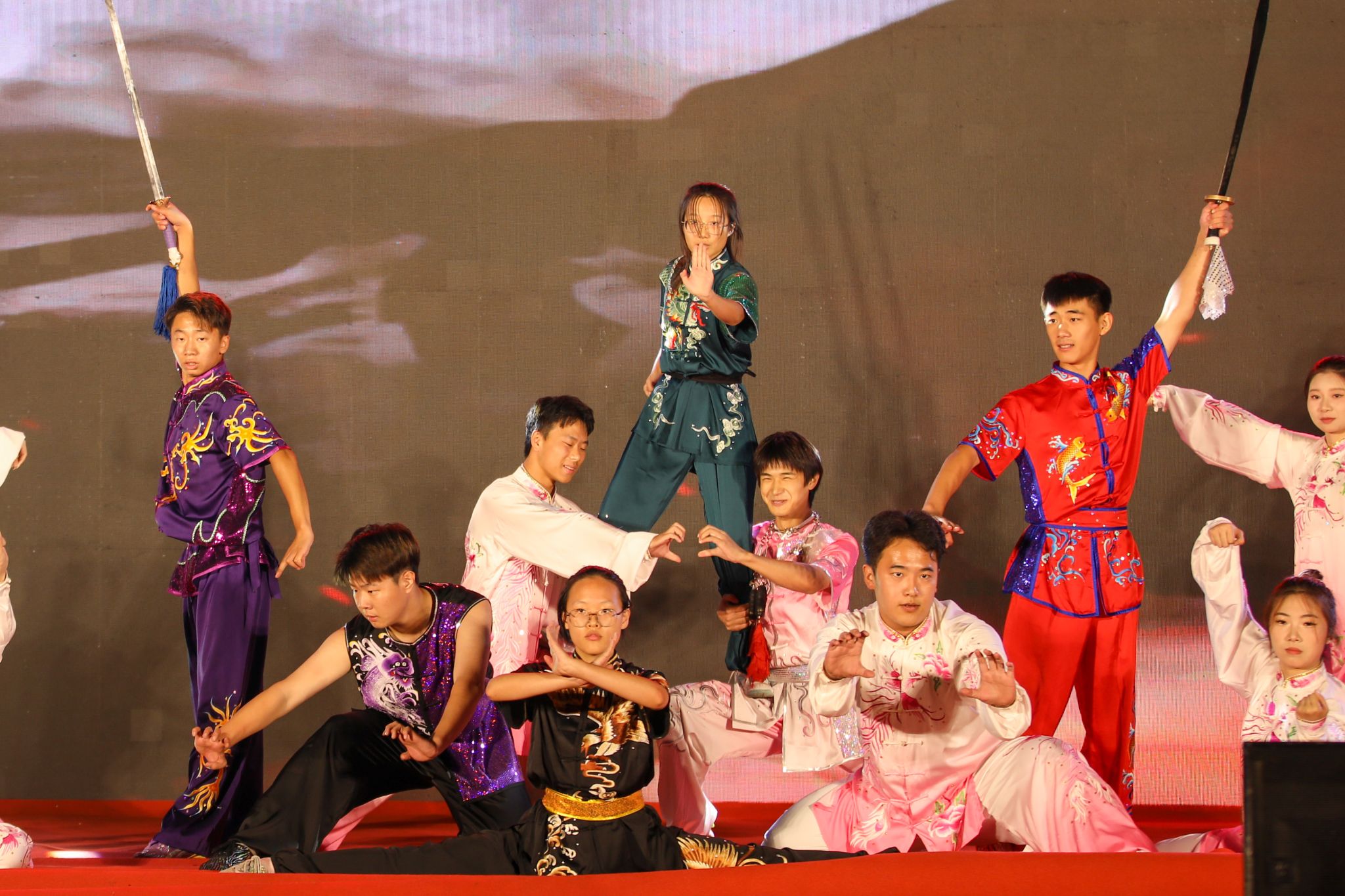 演出现场,璀璨的灯光与荧光棒交相辉映,欢呼声与呐喊声响彻操场上空。歌舞、朗诵、武术等多种形式将潍职人爱国、爱校、爱家的情感充分展现。古典与现代、刚劲与柔美、激昂与沉稳的完美结合,为观众们呈现了一场精彩纷呈的视听盛宴。