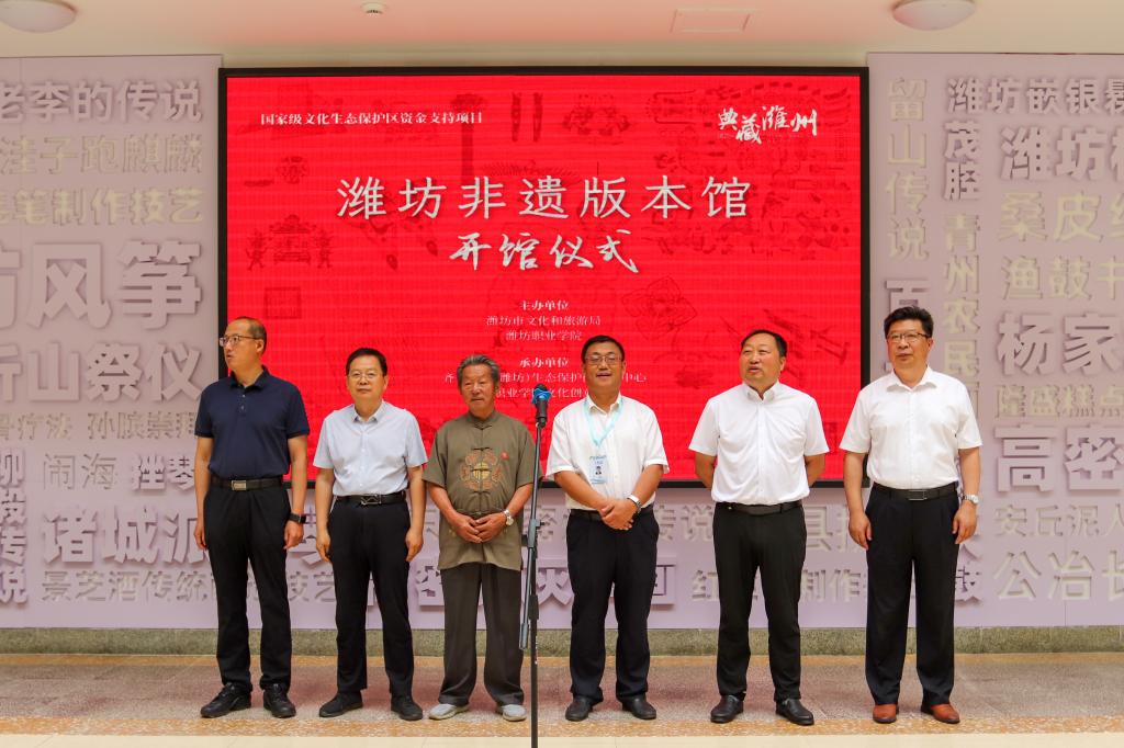 潍坊非遗版本馆是学院与潍坊市文化和旅游局共同打造的全省第一家非遗版本馆,建设历经半年多的时间,以典藏潍州为主题,分为技忆芳华、国风有形、演艺华章、四时工巧、美在民间五个部分,记录了我市非遗保护工作开展以来,特别是国家级文化生态保护区获批以来所取得的辉煌成就,全面展示了我市市级以上非遗项目及版本资源,生动呈现潍坊非遗生态的整体面貌,共征集图片、视频及实物资料1000余件,此次将展出200余件珍品。
