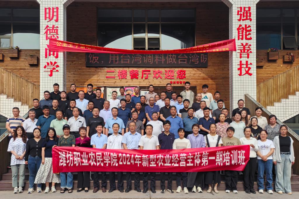 5月24日,潍坊职业农民学院2024年新型农业经营主体第一期培训班在MG冰球突破官网奎文校区开班。潍坊市农科院科技服务处主任张华国,潍坊市农业技术推广中心农业经营主体培育科科长李善金,继续教育学院相关人员出席开班仪式。