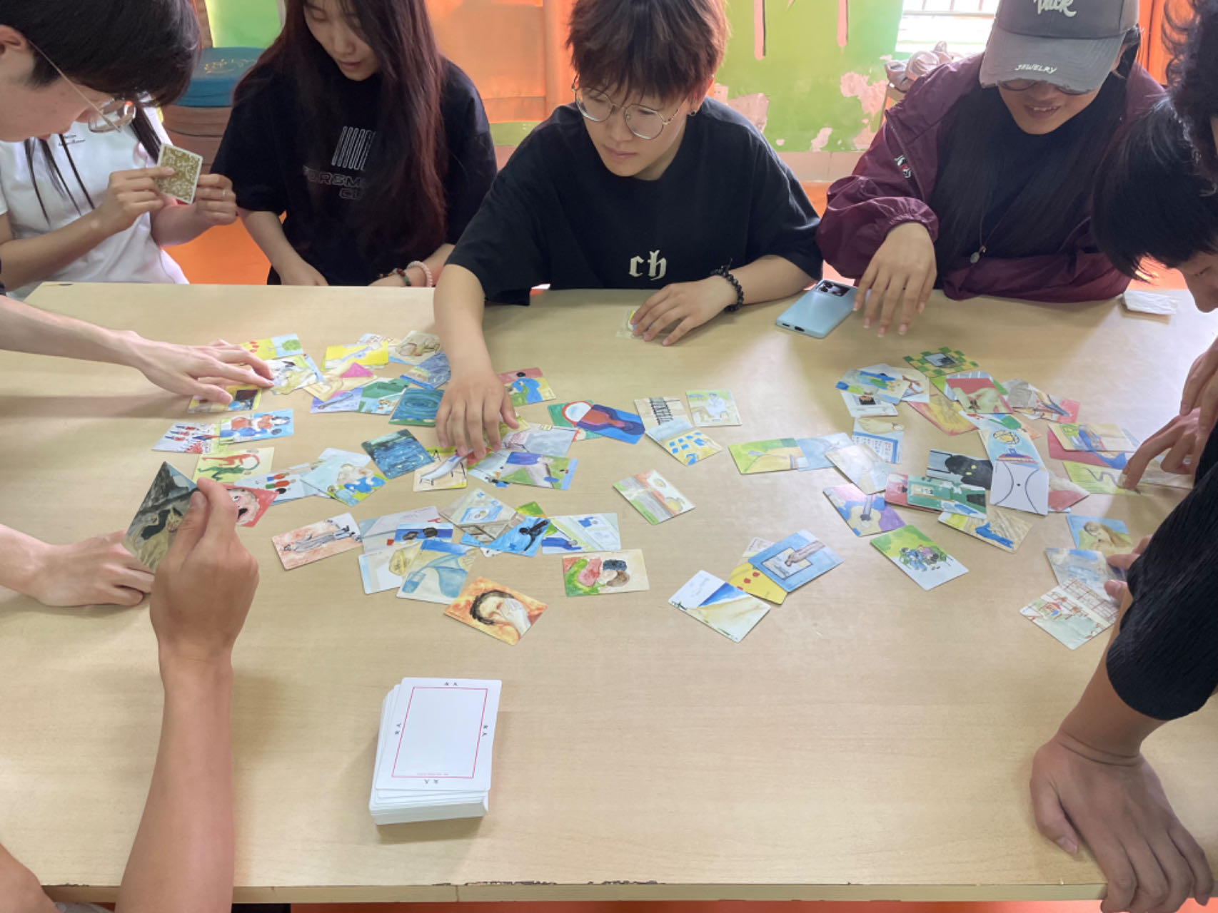 活动开始,王晓卉老师介绍了本次活动的目的及团体约定,用轻松的破冰游戏“为自己代言”和“只言片语”,帮助同学们放松并建立团队间的友好关系。在“故事接龙”环节,同学们发挥想象力和创造力,创作连贯且富有创意的团队故事。在活动过程中,同学们学会了相互支持和鼓励,从最初的不安、犹豫到每个人都能在挑战中找到自我表达的机会。最后,为加强团队间的正向反馈,每位学生再次抽取一张图卡和字卡,用来向其他同学表达赞美和祝福,这不仅增进了同学间的情谊,也让同学们都能带着满满的正能量和创造性思维回到日常学习和生活中。
