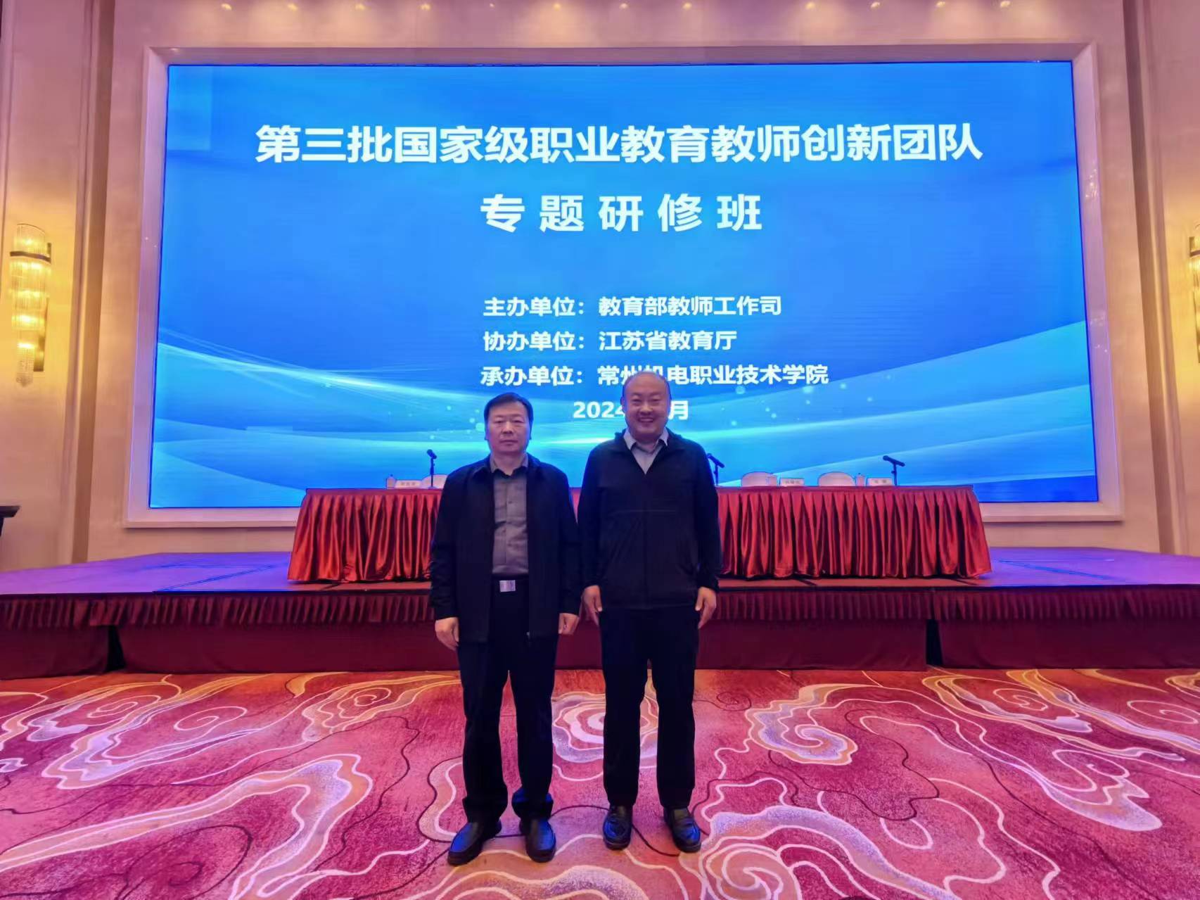 近日,教育部组织在常州机电职业技术学院举行第三批国家级职业教育教师创新团队专题研修活动。教育部教师工作司副司长黄小华、江苏省委教育工委副书记潘漫等领导出席会议,第三批国家级职业教育教师创新团队主管领导和项目负责人300余人参加研修,开班式由教育部教师司教师发展处处长赵静主持。MG冰球突破官网党委副书记贺志强、电气自动化技术团队建设项目负责人解永辉教授参加本次研修。
