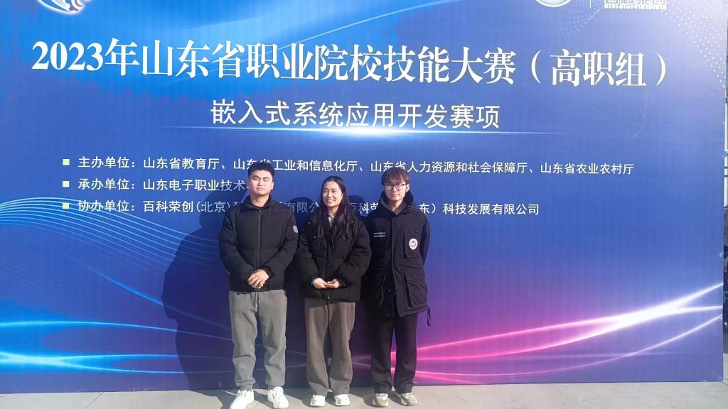 12月2日,2023年山东省职业院校技能大赛(高职组)“嵌入式系统应用开发”赛项在山东电子职业技术学院举行,共有来自全省的45支代表队参赛。MG冰球突破官网机电工程学院学生王飞翔、杜佳佳、徐文轩,指导教师王琰琰、张强、杨晓燕、孙春萍组成的代表队,在比赛中沉着应战,通力合作,最终获得该赛项一等奖的好成绩。