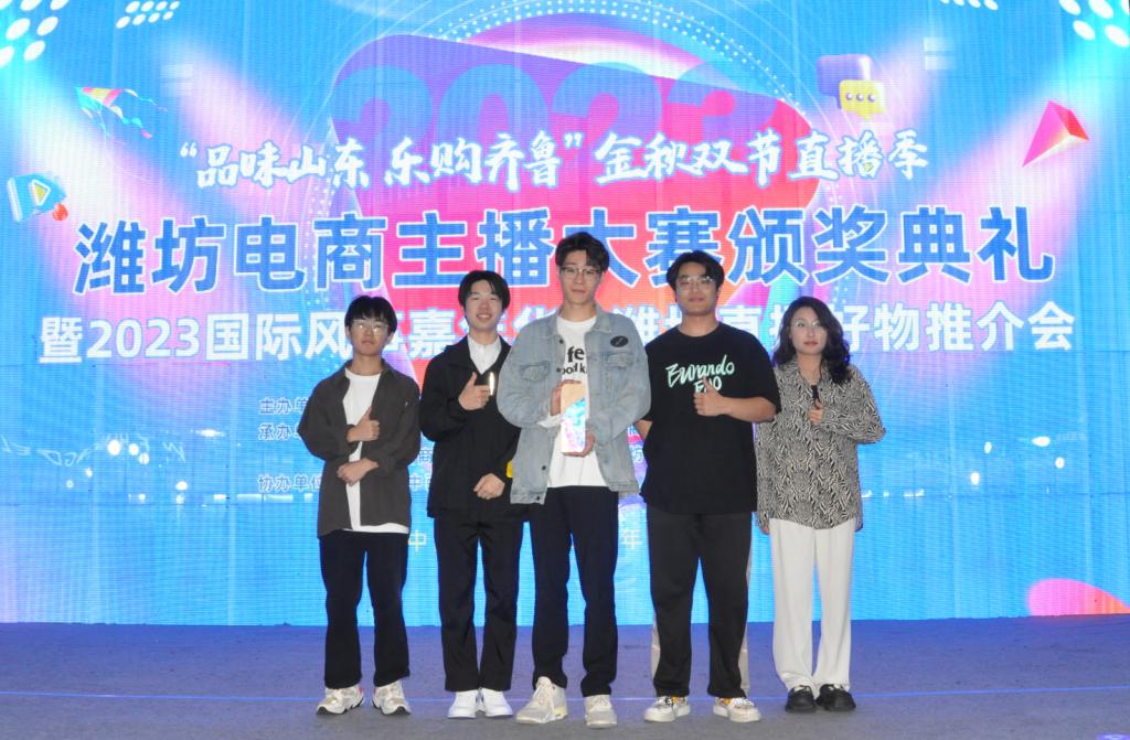 9月20日,由潍坊市商务局主办的“品味山东,乐购齐鲁”潍坊电商主播大赛决赛在潍坊市广播电视日报社成功举办,来自全市22个代表队参加角逐。MG冰球突破官网学生刘政华、许振齐、许春原、梁晨、牛芮哲组成的代表队,在指导教师团队李航、刘迪迪带领下以第一名的优异成绩获得院校组团体冠军,指导教师李航、刘迪迪获评“优秀指导老师”。