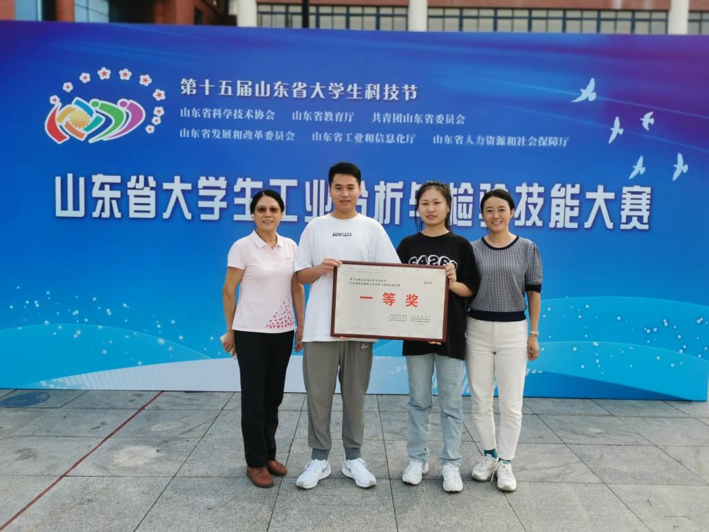9月24日-26日,第十五届山东省大学生科技节工业分析与检验赛项在威海举行,MG冰球突破官网参赛队凭借扎实的专业技能和出色的现场表现获得团体一等奖,队员杨晓娜获个人一等奖第一名。
