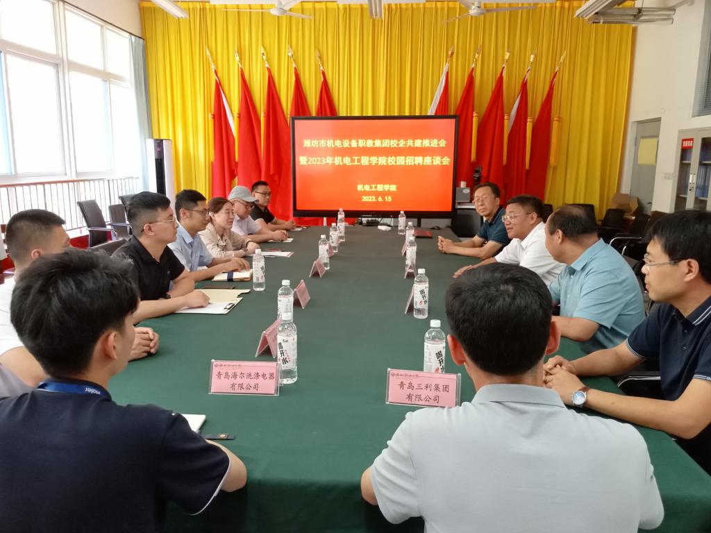 为充分发挥职教集团各成员单位作用,保障毕业生高质量就业,6月15日,学院潍坊市机电设备职教集团在滨海校区惠泽2号楼举办2024届毕业生双选会,职教集团37家骨干企业参加双选会,学院党委副书记韩瑞东、机电工程学院主要负责同志及其他相关负责人与前来参会的成员单位进行了座谈。