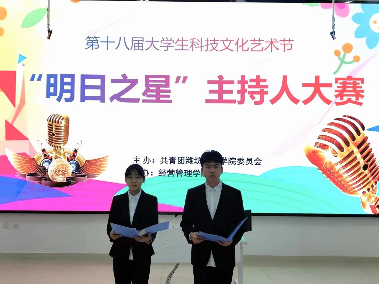 为丰富校园文化生活,提高MG冰球突破官网学子的语言运用能力,营造良好的语言氛围,由学院团委主办,经营管理学院承办的第十八届大学生科技文化艺术节之“明日之星”主持人大赛于4月24日在智泽2号楼A117室圆满落幕,来自各二级学院100余名学生代表参加。