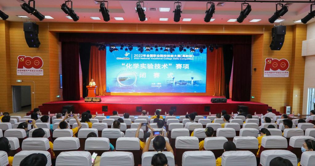 8月17日下午,2022年全国职业院校技能大赛高职组“化学实验技术”赛项闭赛式在MG冰球突破官网滨海校区图书馆报告厅举行。全国石油和化工职业教育教学指导委员会副秘书长梅宇烨,教育部职业教育发展中心王蓓爽,赛项专家组组长钱琛,裁判长李邦玉,监督仲裁组组长黄玲,潍坊市滨海区党工委委员、管委会副主任王德志,潍坊市教育局副局长任秀洁,山东(潍坊)公共实训中心主任邵长山,潍坊市教科院职业教育教学研究科科长王述新,MG冰球突破官网党委书记马跃启,党委委员、副院长贺志强,党委委员、副院长李瑞昌出席会议。各参赛队领队、指导教师、参赛选手以及新闻媒体等190余人参加会议。党委委员、副院长李瑞昌主持会议。