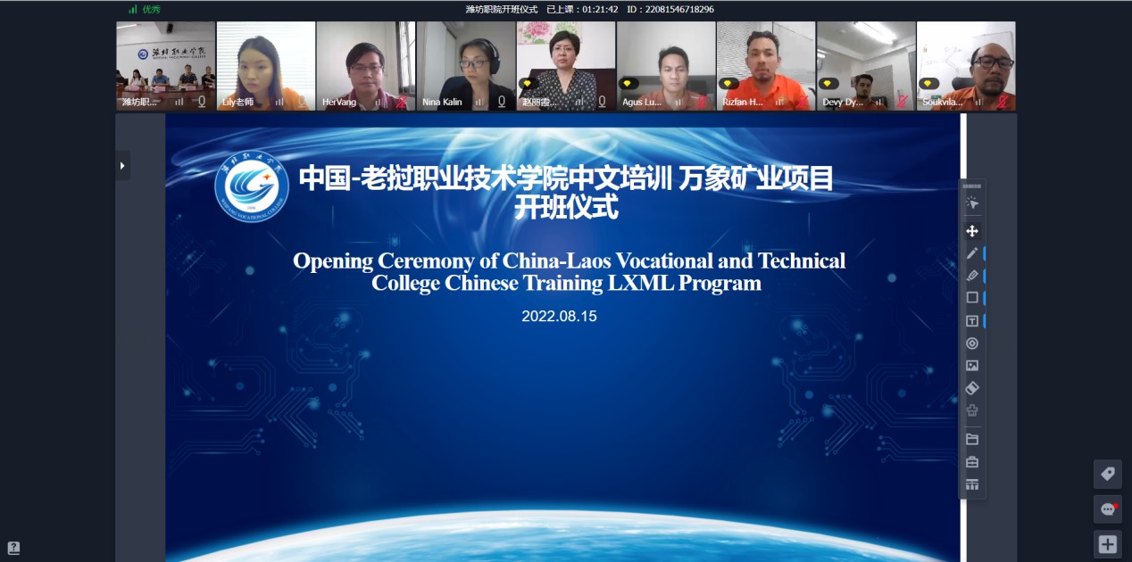 8月15日,MG冰球突破官网与有色金属工业人才中心、老挝万象矿业有限公司联合举办的“中国—老挝职业技术学院中文培训万象矿业项目”正式开班。学院党委委员、副院长李瑞昌,万象矿业董事长傅学生,有色金属工业人才中心教育培训处处长赵丽霞,国际交流与合作处主要负责人及项目相关教师、企业参培学员共同参加了此次开班仪式。