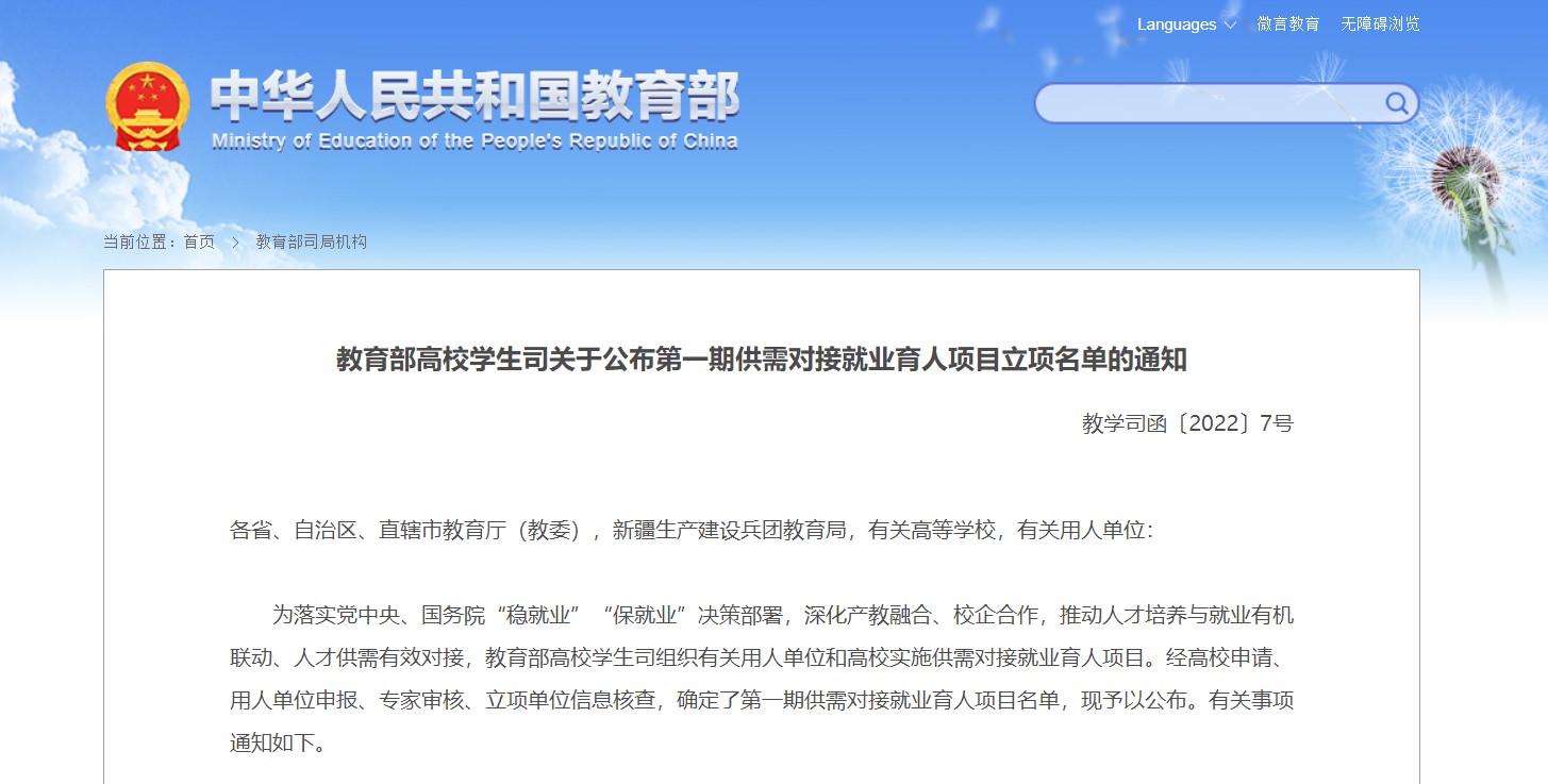 此次评选旨在落实党中央、国务院“稳就业”“保就业”决策部署,深化产教融合、校企合作,推动人才培养与就业有机联动、人才供需有效对接,通过高校申请、用人单位申报、专家审核、立项单位信息核查等环节,确定供需对接就业育人项目名单。