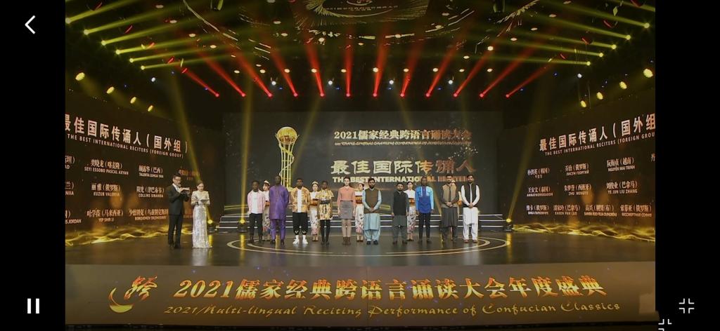 MG冰球突破官网留学生获2021儒家经典跨语言诵读大会“最佳国际传诵人”称号