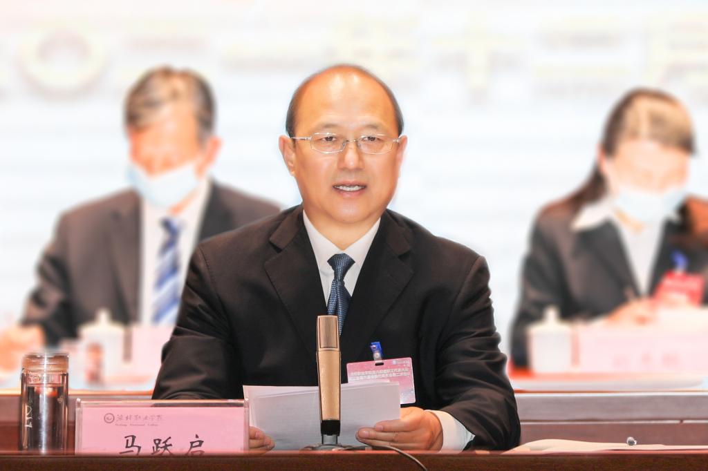 马跃启就落实新发展理念,奋力开创高质量发展新局面提出三点意见:一是充分肯定学院六届一次“双代会”以来的工作成绩。一年来,学院以“双高/职教高地”建设和文明创建为抓手,齐抓管理、共谋发展,学院各项工作取得了显著成绩。学院“十三五”规划圆满收官,“十四五”发展胜利开启。二是把学习宣传贯彻六中全会精神贯穿“双代会”始终。要提高站位,真正把习近平新时代中国特色社会主义思想和党的十九届六中全会精神、“两个维护”政治要求融入问题提出、问题思考和问题解决之中,为学院深化改革、攻坚克难献计献策。三是把聚焦问题解决和凝聚共识作为代表的神圣职责。2022年是学院“十四五”高质量发展的攻坚之年。面对国家重大战略对职业教育作为类型教育的新要求,我们要以高度的责任感和使命感,拓宽视野,深入思考,聚焦问题,反映实情,提出良策,凝聚共识、形成合力,以“抓党建促创建,谋高质量发展”为工作主线,团结一致,勇毅前行。