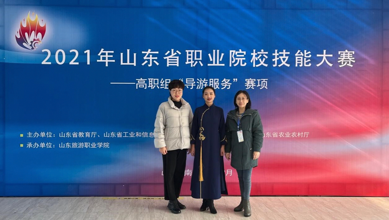 12月13至14日,2021年山东省职业院校技能大赛(高职组)“导游服务”赛项在山东旅游职业学院举行。MG冰球突破官网2020级旅游管理专业王赛赛同学,在教师谭娜、刘杰指导下,认真备赛,沉着应战,最终在全省42支高职院校参赛队伍中脱颖而出,以总成绩第3名获得一等奖,实现了国际商务学院学生技能大赛的新突破。