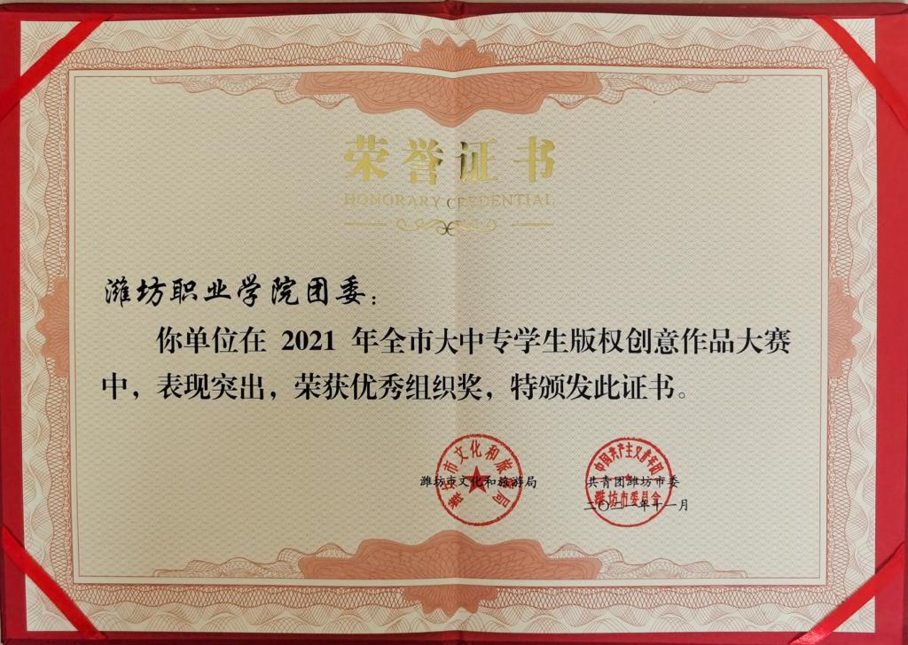 学院在2021年潍坊市大中专学生版权创意作品大赛中获佳绩