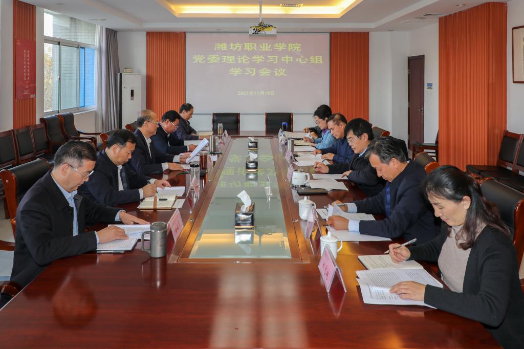 11月16日,学院党委理论学习中心组在滨海校区清泽楼222会议室集体学习《中国共产党第十九届中央委员会第六次全体会议公报》。学院党委书记马跃启主持会议,学院党委理论学习中心组成员参加集体学习。