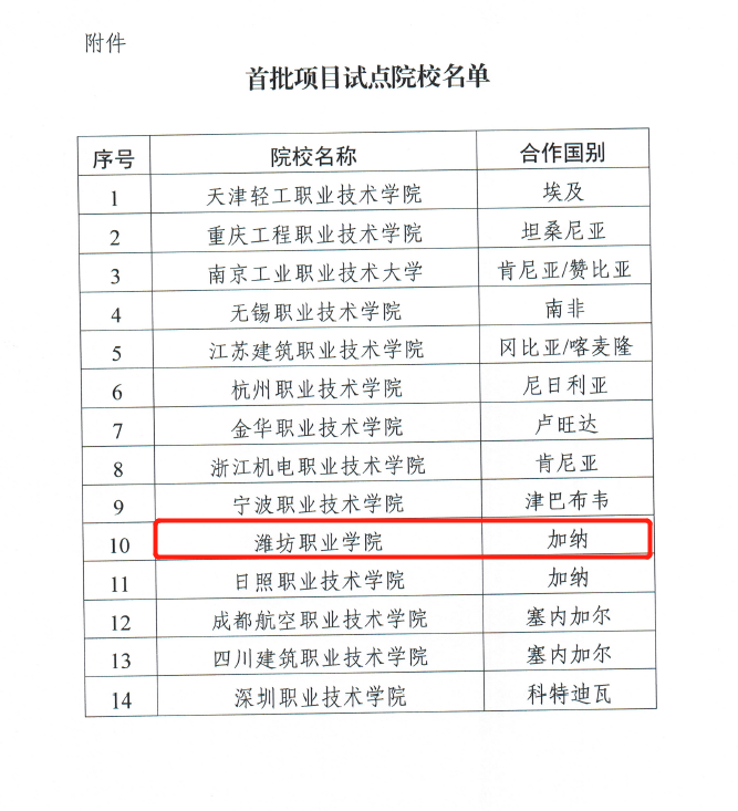 近日,MG冰球突破官网入选教育部首批“中非应用型人才联合培养项目”试点院校。全国共14所高等职业院校被确定为“中非应用型人才联合培养项目”首批试点院校,MG冰球突破官网积极组织申报,经山东省教育厅推荐成功获批为首批试点院校,与加纳库马西技术大学合作开展机电一体化技术专业人才联合培养和教师培训项目。