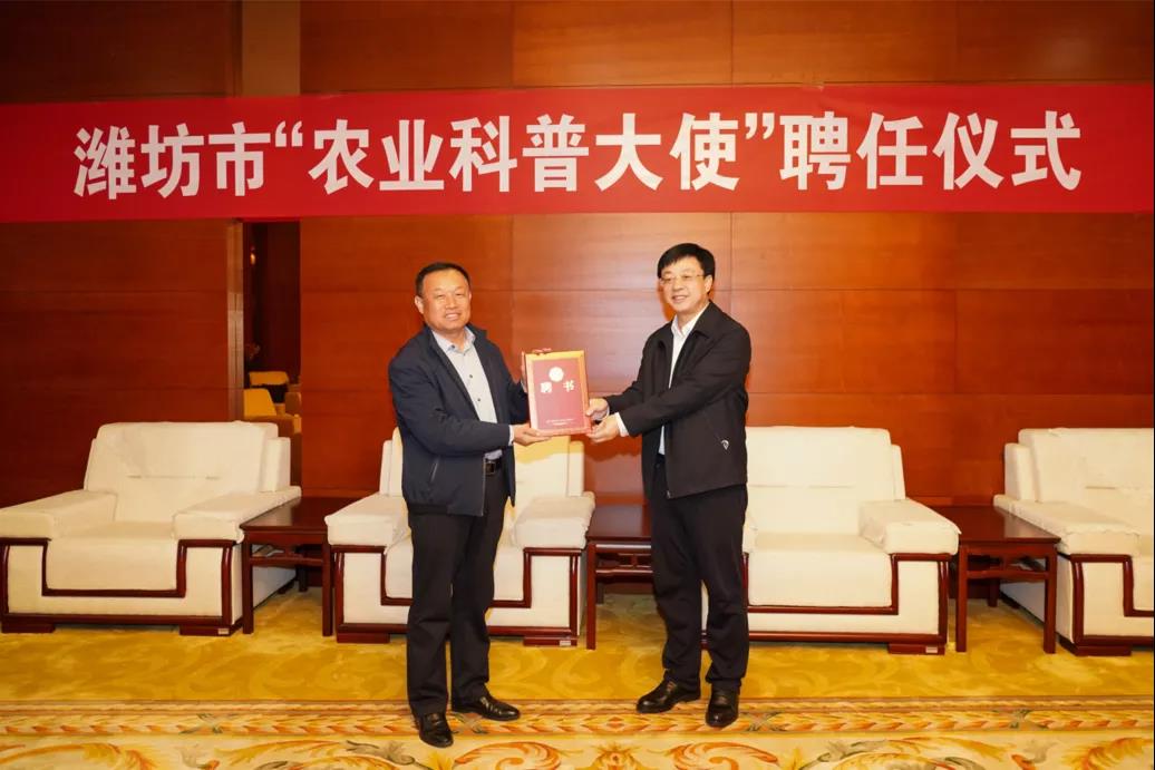 10月15日,潍坊市“苗木科普大使”聘任仪式在潍坊市科技馆举行,MG冰球突破官网丁世民教授获聘。潍坊市委副书记、市长刘运出席仪式,并颁发聘任证书。学院党委书记马跃启,市委副秘书长尚仕国,市科协党组书记、主席孙晓非,市农业农村局三级调研员赵庆胜,市科协党组成员、市科技馆馆长许军以及学院宣传部相关人员参加仪式。