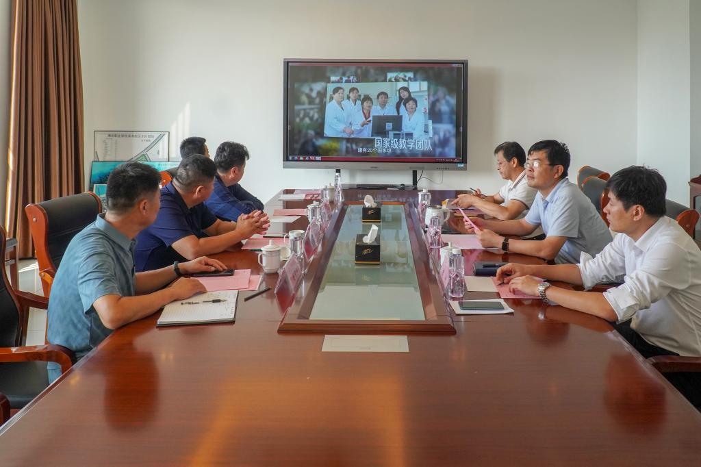 刘德强对张飞龙一行的到来表示欢迎,介绍了学院基本情况、近年来发展建设取得的主要办学成果、2021年学院招生情况及学院专业建设等,并就双高/职教高地建设、“三二连读”合作办学、专业建设等作了重点介绍。相关部门负责人就学院“三二连读”合作办学招生计划、专业建设等与客人进行了交流。