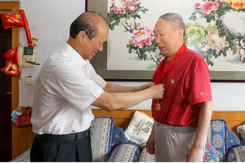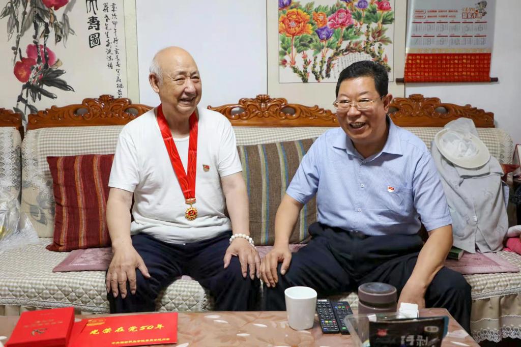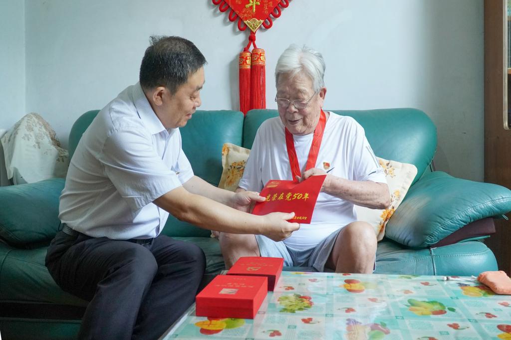 在中国共产党迎来百年华诞之际,按照中央部署和省委、市委安排, 6月26日至27日,MG冰球突破官网党委组织所有党政领导班子成员登门为每一位在党50年以上老党员颁发“光荣在党50年”纪念章,为他们送去党组织的关怀,并向他们致以崇高的敬意和节日问候。