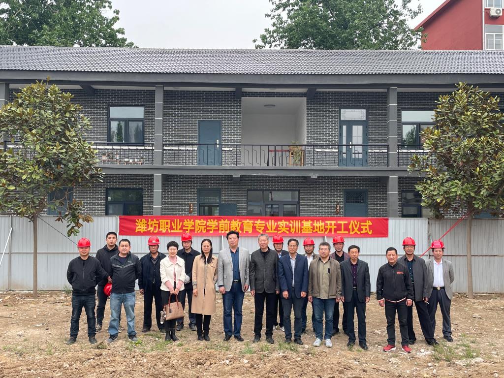 4月30日,学校学前教育专业实训基地建设项目举行开工仪式。基建处、继续教育学院、文化创意学院负责同志及山东一格投资有限公司负责人出席仪式。