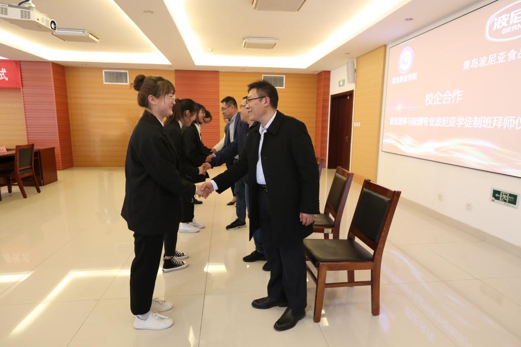 4月15日,学校与青岛波尼亚食品有限公司校企合作项目食品营养与检测专业波尼亚学徒制班签约及拜师仪式在滨海校区清泽楼312举行。学校副校长李瑞昌、青岛波尼亚食品有限公司运营副总经理段中航出席仪式,教务处、科技处相关同志、波尼亚公司项目负责人、食品药品学院党总支书记、教师代表和学徒制班全体师徒参加了仪式。