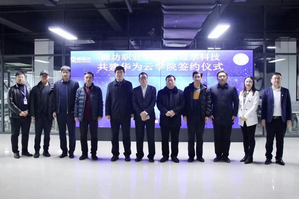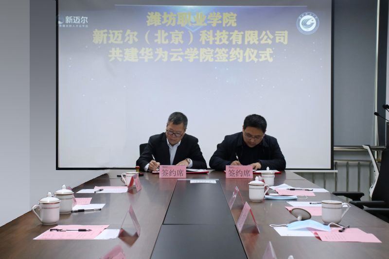 1月21日上午,学院与新迈尔(北京)科技有限公司共建华为云学院签约仪式在新迈尔产教融合双创实训基地举行。学校副校长贺志强、刘德强,新迈尔(北京)科技有限公司COO张廷文出席,科技处、招生就业处、信息工程学院负责同志及新迈尔实训基地有关负责人参加活动。