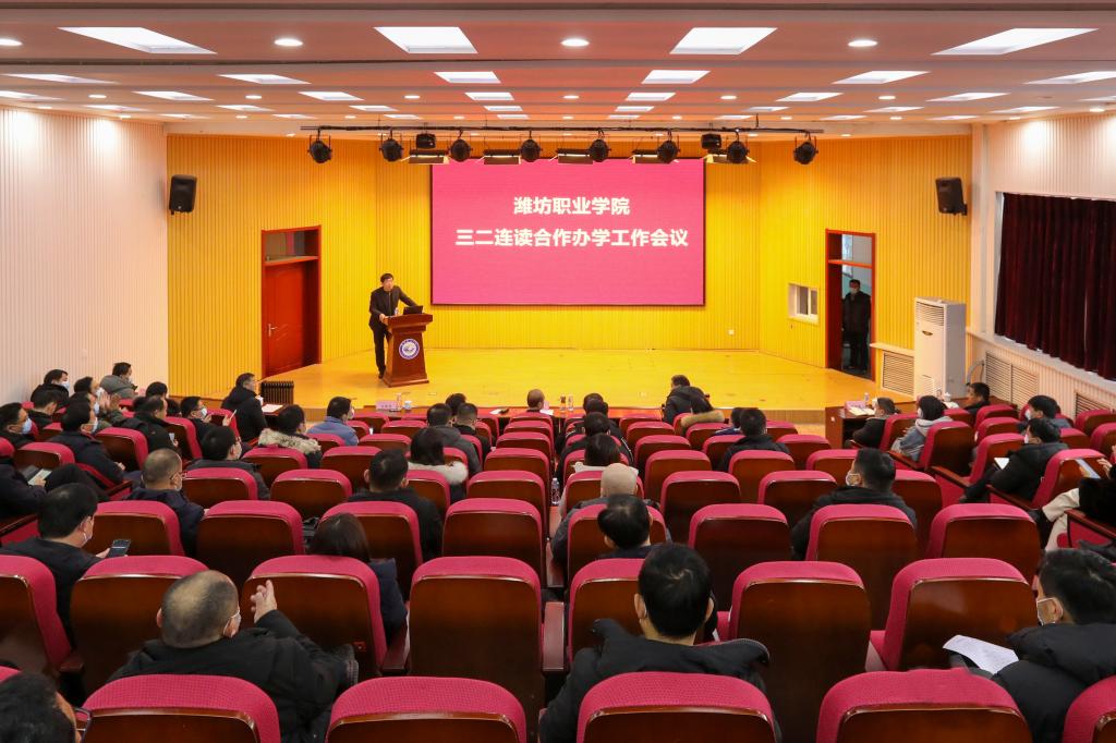 1月7日下午,学校在奎文校区潍坊大学生互联网+创业中心组织召开了“三二连读”合作办学工作会议。学校党委书记马跃启,副校长刘德强,党委委员、办公室(统战部)主任(部长)任培华出席会议,山东省轻工工程学校校长迟本理,青岛市城阳职业中专校长黄祖顺等29所合作办学学校的校领导以及招生、教学、专业的负责同志,教务处、招生就业处以及二级学院负责同志,共80余人参加会议。刘德强主持会议。