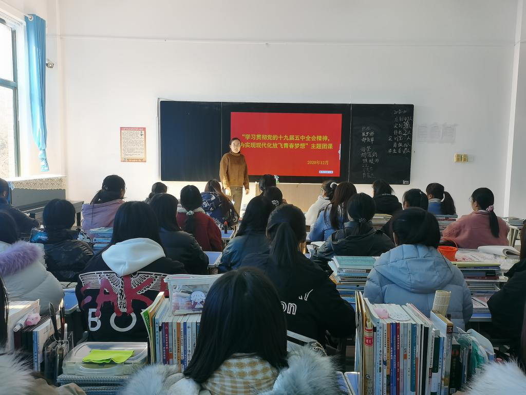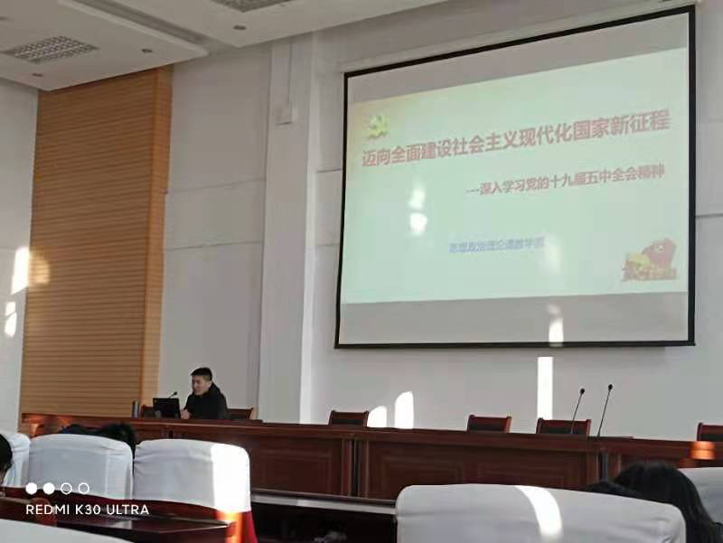 团委学生工作处组织各团总支,以“学习贯彻十九届五中全会精神,为实现现代化放飞青春梦想”为主题开展了主题团课。团课由形势与政策教研室牵头,全体思政课教师参与,在“同备一堂课”的基础上以“全面开启社会主义现代化建设新征程”为主题,于12月18日前利用形势与政策课对全校学生进行宣讲,落实党的十九届五中全会精神进“三进”工作。(史海亮 刘佳供稿)