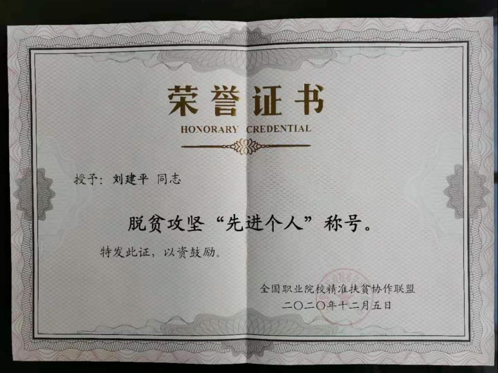 MG冰球突破官网教师被评为全国职业院校精准扶贫协作联盟脱贫攻坚先进个人